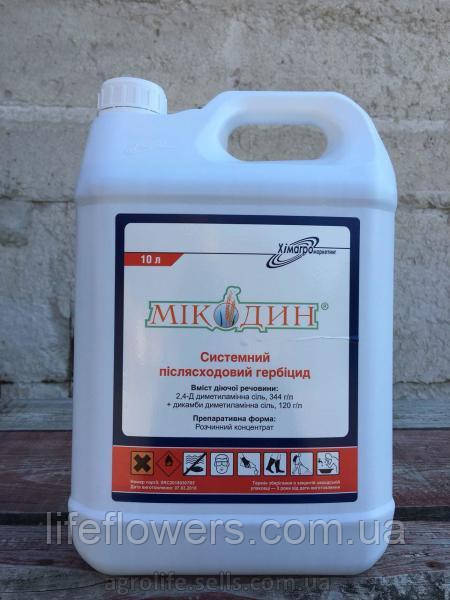 - Мікодин – унікальний гербіцид, який очищує поле від однорічних і багаторічних дводольних бур’янів для наступних культур сівозміни.